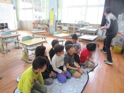 今日は、3・4年生が、上篠原保育園に行き、ふれあい交流会を行いました。最初に3・4年生が歌をプレゼントし、いっしょにケーキを食べた後、保育園児たちが歌を歌ってくれました。最後にみんなで遊びました。楽しい時間は早く過ぎ、お別れしました。この保育園に通っていた児童もいて懐かしそうでした。保育園の先生方に成長した姿を見せられてよかったです。