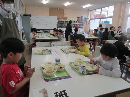 今年度から、全校給食を始めましたが、よい雰囲気の中で食事をしていることご覧いただけたのではないかと思います。