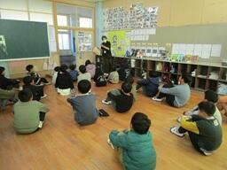 12月5日、1、2年生は学級活動で「給食ありがとう」という学習をしました。給食が届くまでの様子や給食の栄養バランスなどについて、学級担任と中学校の栄養教諭で指導しました。2年生は、昨年度もこの学習をしていたので、よく覚えていました。