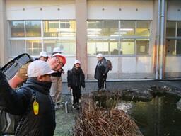 1月9日(金)朝は氷点下の冷え込みでした。学校の中庭にある池は氷が張っていました。
