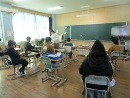 夏休み明けの給食時には、串間中の栄養教諭を招いて、運動会練習時期の食に関する気をつけることを指導していただきました。