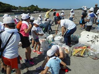 本校の千野の親子会やPTA・児童の個人参加もあり、ボランティアの方々と清掃活動を行いました。ウミガメの産卵地ということで、環境資源の豊かな本城地区という印象が大きかったです。