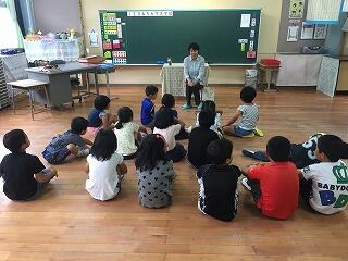 月に一度、月曜の朝に、読み聞かせボランティアの檜垣和子さんが読み聞かせをしてくださることになりました。これまでは、昼休み時間だったのですが、昼休みは、外で遊びたい児童もいるため、朝の活動の時間にやってみることになりました。今回は、1,2年生に向けてでした。児童は、一生懸命聞いていました。読み聞かせボランティアに興味のある方は、檜垣さんか学校までご連絡ください。