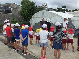 保育園の児童も参加しました。たくさんのきゅうりをみて、児童も園児びっくり。児童がきゅうりちぎりをするので、薬の散布を控えていただいていたそうで、健康上のご配慮もありがたかったです。