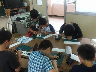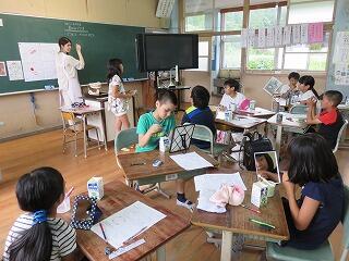 児童は楽しそうにクイズの方絵を考えていました。