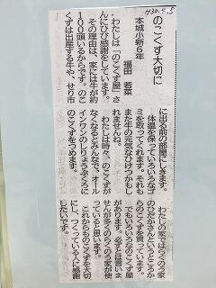 宮日新聞の若い目に6年生の鎌田大輝くんの作文が掲載されました。