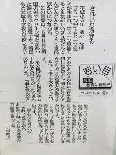 宮日新聞でも日曜日の新聞で、ウミガメが産卵に来たことが紹介されました。