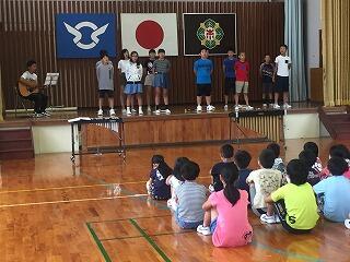 本日の全校集会は、6年生の発表でした。6年生が担任の先生のギターに合わせて合唱したり、楽器を演奏したりしました。下級生からたくさんの拍手をもらっていました。