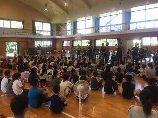 鑑賞教室に、有明小の体育館まで行きました。鹿児島高専高校のブラスバンドの演奏会で音楽・楽器の楽しさを伝えていただきました。子どもたちは、音楽を楽しみ、楽器にも触れ、楽しい時間を過ごしました。