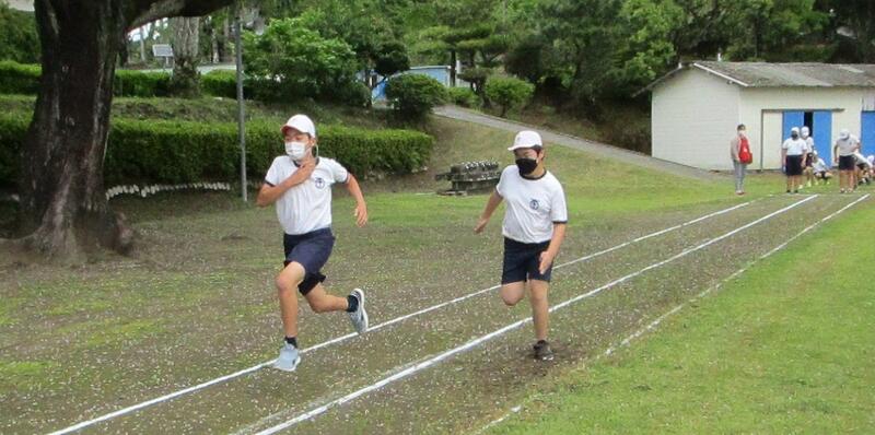 今日は、運動会予行練習が行われました。途中通り雨がありましたが、無事計画通り終えることができました。初めてプログラムを通して競技を行いましたので、並び方や係の仕事において、うまくいかなかったところが見られましたが、本番までには修正できそうです。中高学年は、自分たちが参加する競技と並行して係の仕事をすることの大変さを感じたことと思います。秋季大運動会は9月24日(土)です。