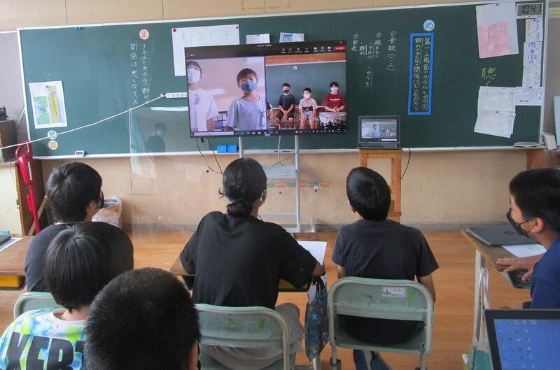 来週の木曜日金曜日は、6年生の修学旅行が計画されています。行き先は、コロナ感染を考慮して宮崎県内になりました。本城小、金谷小、都井小の3校合同で実施します。今日は、事前の顔合わせとして、オンラインでの交流会を行いました。各学校ごとに自己紹介と出し物をして交流を深めました。修学旅行当日は、楽しい思い出を作ってほしいです。