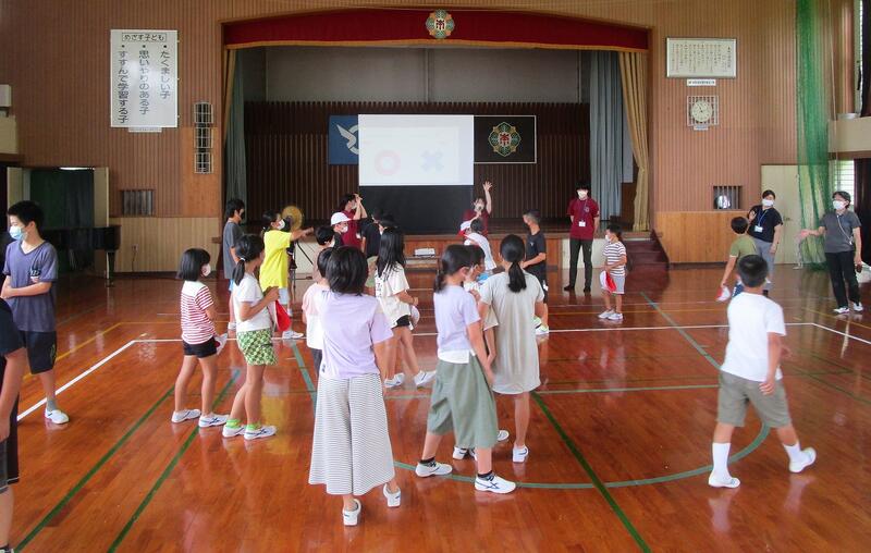 10月になりました。全校一斉に遊ぶ「じゃれあいタイム」が体育館で行われました。たくさんの人数で遊ぶため、子どもたちが楽しみにしている活動の一つです。3回目の今日は、ドッジビーを行いました。ドッジボールのルールで、ボールではなく、柔らかいフリスビーを使います。短い時間でしたが、1年生から6年生まで楽しい時間を過ごしていました。