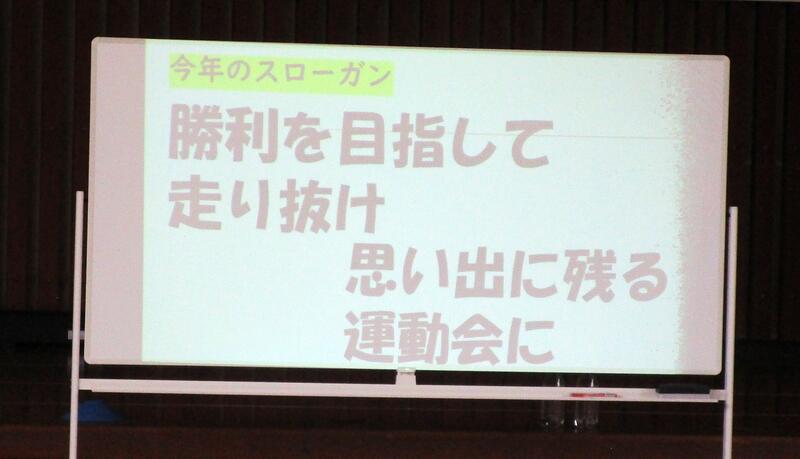 今日は、運動会結団式が体育館で行われました。まず、児童会で決定した運動会スローガンが紹介されました。今年度のスローガンは「勝利を目指して走り抜け 思い出に残る運動会に」です。そして、団長による赤白決定が行われ、各団の団長、副団長、リーダーが抱負を述べました。最後は、体育主任の先生の「運動会がんばるぞー。」の後に、全員で大きな声で「おー!」と拳を突き上げて終わりました。運動会本番は、9月24日(土)です。
