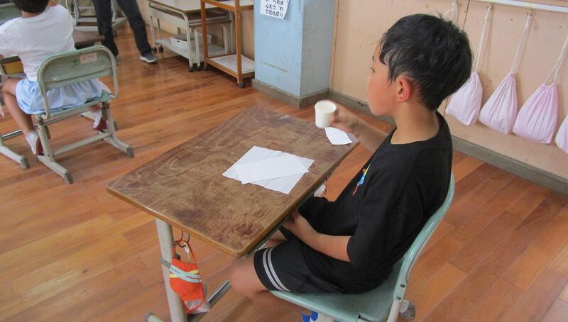 今日はフッ化物洗口を行いました。むし歯予防のため、フッ化物水溶液を口に含んでぶくぶくうがいをしました。2年ぶりに再開したため、低学年は初めて取り組みましたが、みんな上手にできていました。