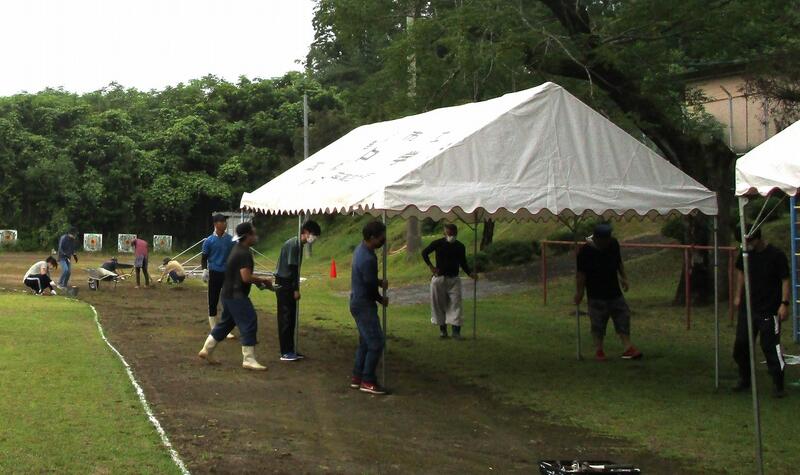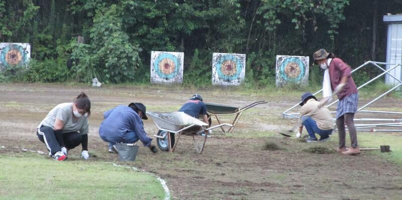 今日は、PTA奉仕作業が行われました。感染対策として、短時間で保護者のみで実施しました。保護者、職員合わせて20人以上で、テント設営と運動場トラックの整備を行いました。皆さんてきぱき作業をしていただき、途中で雨が降り出し、かみなりも鳴り始めましたが、1時間ほどで計画した作業内容は全て終わりました。並行して、チーム本城の方々がどんぐり坂を整備してくださりました。保護者、地域の皆様のご協力により、気持ちよく2学期がスタートできそうです。ありがとうございました。