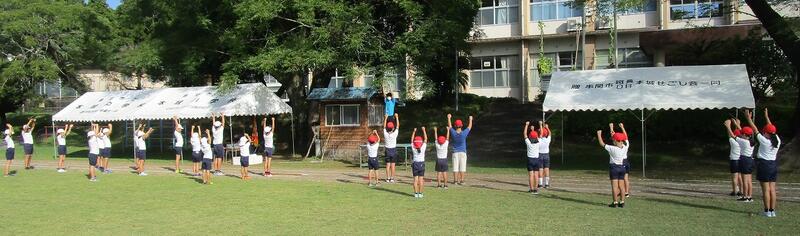 少し朝夕に涼しさを感じられるようになってきましたが、日中はまだまだ暑さを感じます。今日は3回目の全校体育でした。開閉会式の練習をしたあと、全校団技の「綱引き」と「大玉ころがし」の練習をしました。そして、団に分かれて応援の練習をしました。まだまた改善の余地はありますが、徐々に仕上がってきています。来週は予行練習が行われる予定です。