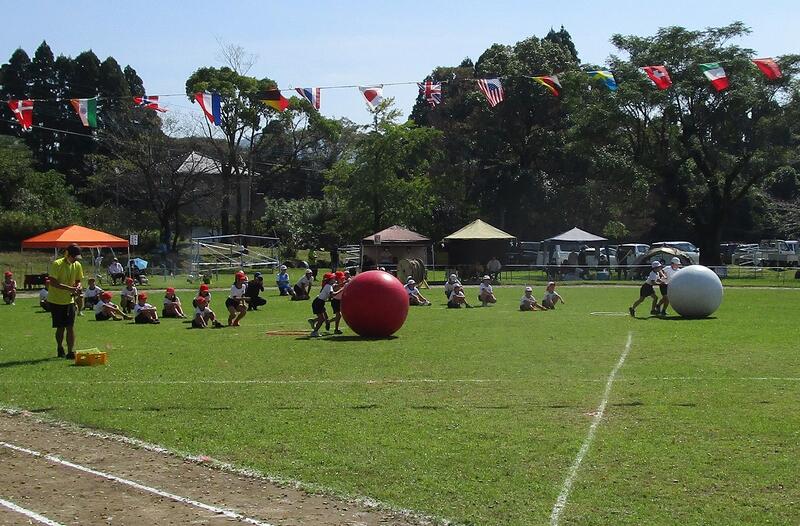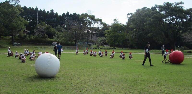 そして、今日は久しぶりの晴天でした。1、2年生の体育の授業では、運動場で、ボール遊びをしました。思いっきり体を動かして楽しそうに活動していました。