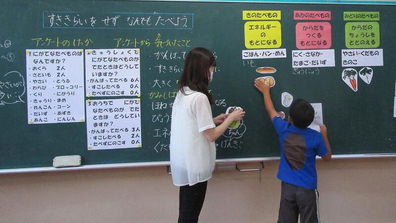 1・2年生は、栄養教諭の先生に来ていただき、食べ物の栄養について学びました。今日の給食に使われている食材を3つの栄養グループに分ける場面では、バターがどのグループに入るかが難しかったようです。バランスよく栄養をとるため、すききらいなく食べることの大切さを学びました。