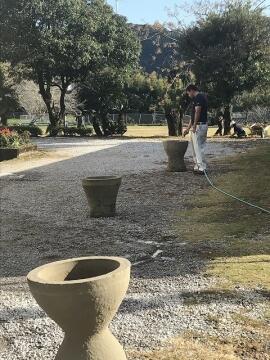 本日は土木の日ということで、校内の「渡り石」の整備を建築業者の方々が