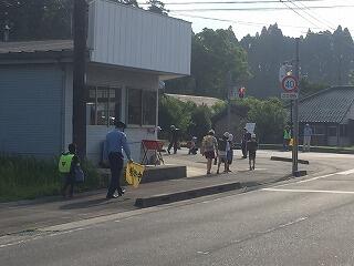 いつも、学校の下の交差点で、児童の登校を地域の方(今江さん、吉田さんが中心に)