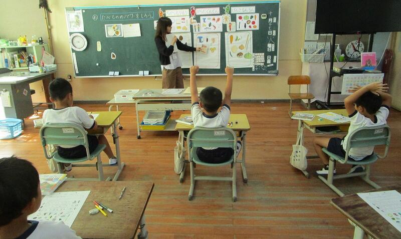 今日2時間目に、栄養教諭の先生に来ていただき、1・2年生学級で、食に関する授業をしていただきました。食物を3つのグループに分けて、バランスよく食べることが健康につながる学習をしました。クイズ形式で進み、子どもたちは一喜一憂しながら学ぶことができました。