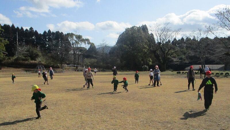 今日は、上篠原保育園生が来校し、全校児童とふれあい集会を行いました。かくれおに、山道ゲーム、タグ取りゲームをいっしょに楽しみました。昨日までの雨も上がり、天候にも恵まれ、楽しい1時間を過ごしました。