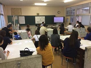 全体懇談では串間警察署から講師をお招きして、夏休み前の子どもたちに関わるインターネットの危険性を講義していただきました。その後、夏休み明けの計算トランプ大会について説明しました。午後からはPTAミニバレー大会で親睦を深めました。
