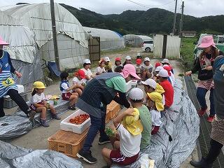 保育園の児童も参加しました。たくさんのきゅうりをみて、児童も園児びっくり。児童がきゅうりちぎりをするので、薬の散布を控えていただいていたそうで、健康上のご配慮もありがたかったです。
