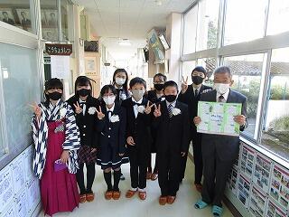 通常より縮小した形で「特別な卒業式」となりましたが、来賓2名、卒業生、5年生、卒業生の保護者で行いました。