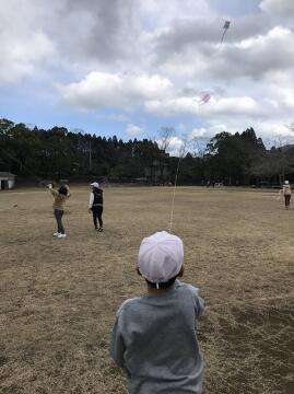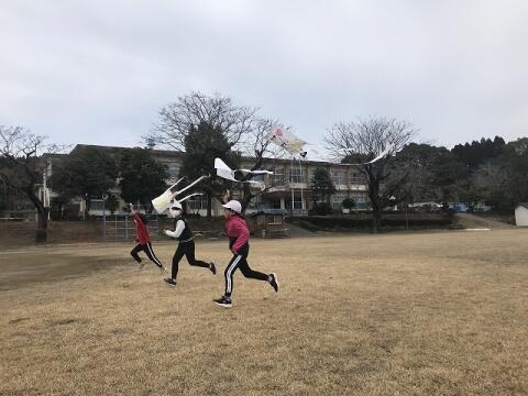 今日は昼休みに風が吹いていたので凧揚げの2回目をしました。
