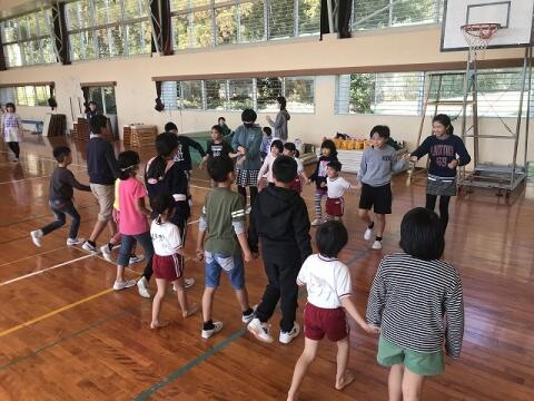 そのあと、グループごとに分かれ、園児と一緒にいろいろなゲームで交流しました。