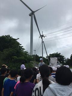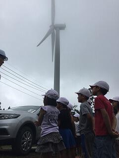 遠くの山には、風車の羽が一枚取り付けられたのが見えます。