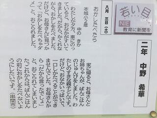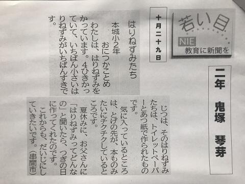 連休中に、2年生のおにつかいちかさんの作品が、宮日の若い目に掲載されました。