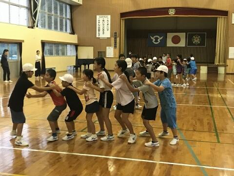 連休明け初日の「じゃれあいタイム」は、全校じゃんけん陣取りでした。