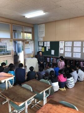 子どもたちかは、実物を見せてもらいながらの解説に、驚きの声や笑い声をあげながら