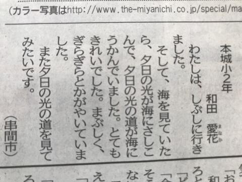 宮日新聞の若い目に2年生の山﨑ふうかさんの作文が掲載されました。