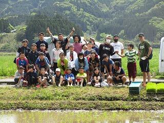 4月16日に、3年生から6年生の児童が田植えをしました。収穫したお米で11月にもちつきをします。子どもたちは、ついたもちを食べることを想像しながら、一生懸命に苗を植えました。地元のJA、保護者、地域の方のご支援もあり、無事に田植えができました。ありがとうございました。