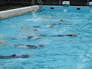 衣服のまま川や海に落ちたらどうなるのか。1学期最後の水泳の授業(7月20日)で、3~6年生が着衣泳の体験をしました。衣服が大量の水を吸収するため、腕や脚を動かすことが困難になることを実体験し、安全について考えました。