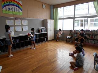 2年生は国語の授業で物語文「名前を見てちょうだい」を学習しました。登場人物の心情などを読み取り工夫して音読することが目標です。6月10日に、1年生を招いて音読劇を行いました。1年生の「とても音読が上手でした」「弟にも聞かせたいくらい楽しかった」などの感想に、2年生はとてもうれしそうでした。
