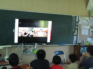 いのちを大切にする教育の一環で、7月7日の全校集会で教頭先生が画像を使って子どもたちに、廊下を走ることによる危険性などの校内での安全な過ごし方、校区内の危険個所についてのお話をしてくださいました。