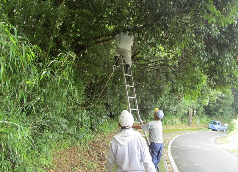 本城小学校に続く坂道は、通称どんぐり坂と呼ばれています。全校児童がこの坂を通って登下校しています。最近この坂道は、木が覆いかぶさってうす暗くなってきました。昨日は、いつも学校を支えてくださる「チーム本城(会長鎌田芳徳さん)」の方々が、どんぐり坂沿いの樹木を切る作業をしてくださいました。朝10時から夕方まで作業をされたようです。薄暗かった坂道が明るくなりました。ありがとうございました。