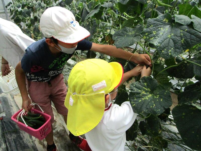 今日は、5・6年生によるきゅうりちぎりが行われました。地域の方のビニルハウスを訪れ、保育園児と交流しながらいっしょに行いました。ハウスの中は暑く、休憩しながら収穫しました。もう20年近く続いている行事です。穫ったきゅうりは全校児童で分けました。地域の方々の協力に感謝です。