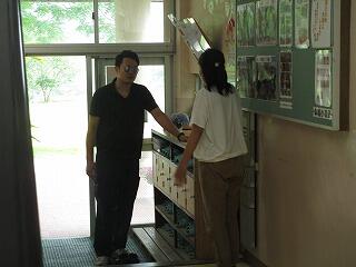 串間警察署から2名の刑事が来られ、一人の方に不審者役を演じていただきました。そのストーリーは刑事2名しか知りません。先生方は誰一人、その展開は想像できません。