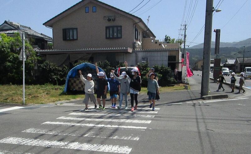 今日は、全校児童参加による交通教室が行われました。串間警察署の方々にお越しいただき、校区内の信号交差点で横断歩道の渡り方を指導していただきました。信号が青であっても、左右をよく確かめ、手を上げて渡りました。これからも登下校中、帰宅後、休みの日等交通ルールを守って過ごしてほしいです。
