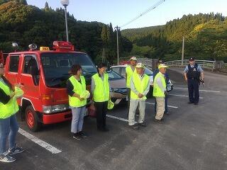 小学校職員、小・中PTA、自治会役員、駐在所、消防団、保護司等が参加して、見回ります。