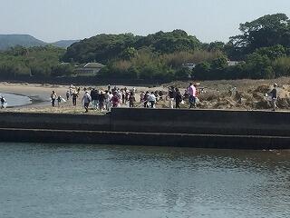 本日、1年生と3年生と4年生が、本城干潟観察を行いました。都井小、北方小、大束小、も参加して晴天の下、楽しい活動を行いました。ボランティアで鎌田さんと河野さんに干潟の説明をしていただきました。