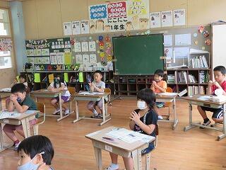食器を持って食べること、食べ物をこぼさないためにはお箸を正しくもつこと、良い姿勢で食べることなどを教えてもらいました。1年生は学習したことを毎日実践しています。