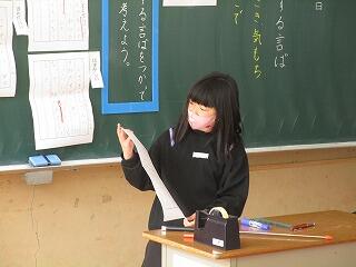これまで学んだことや調べたことについて発表する「学習発表会」形式の授業も見られました。また、写真を見て与えられたキーワードをを用いて作文し伝える国語の授業もありました。授業の最後の場面で、一年間の感謝の気持ちを作文にしたためて保護者に手渡した学年もありました。