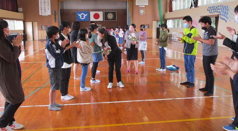 今日は離任式でした。本城小学校からは2名の先生が去られることになりました。お一人ずつお話をいただき、児童を代表して5年生児童がお別れの言葉を述べました。お花を渡した後、校歌を歌って終わりました。二人の先生方の新しい場所でのご活躍をお祈りいたします。