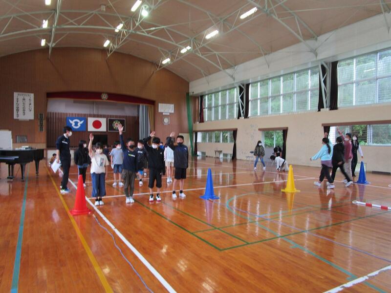 今日の5時間目に運動場で「歓迎集会」を実施しました。1年生の自己紹介からスタートし、各学級が出し物を行いました。〇×クイズ、宝探し、全員リレーなどを行い、最後は、みんなでお弁当を食べて終わりました。1年生を含め、全校児童が交流を楽しんでいた姿が印象的でした。